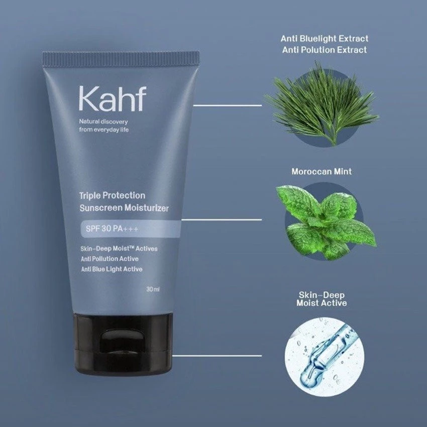 #KahfSunscreen #MensSkincare #TripleProtection #SPF30Moisturizer #BlueLightDefense #PollutionProtection #KahfMen