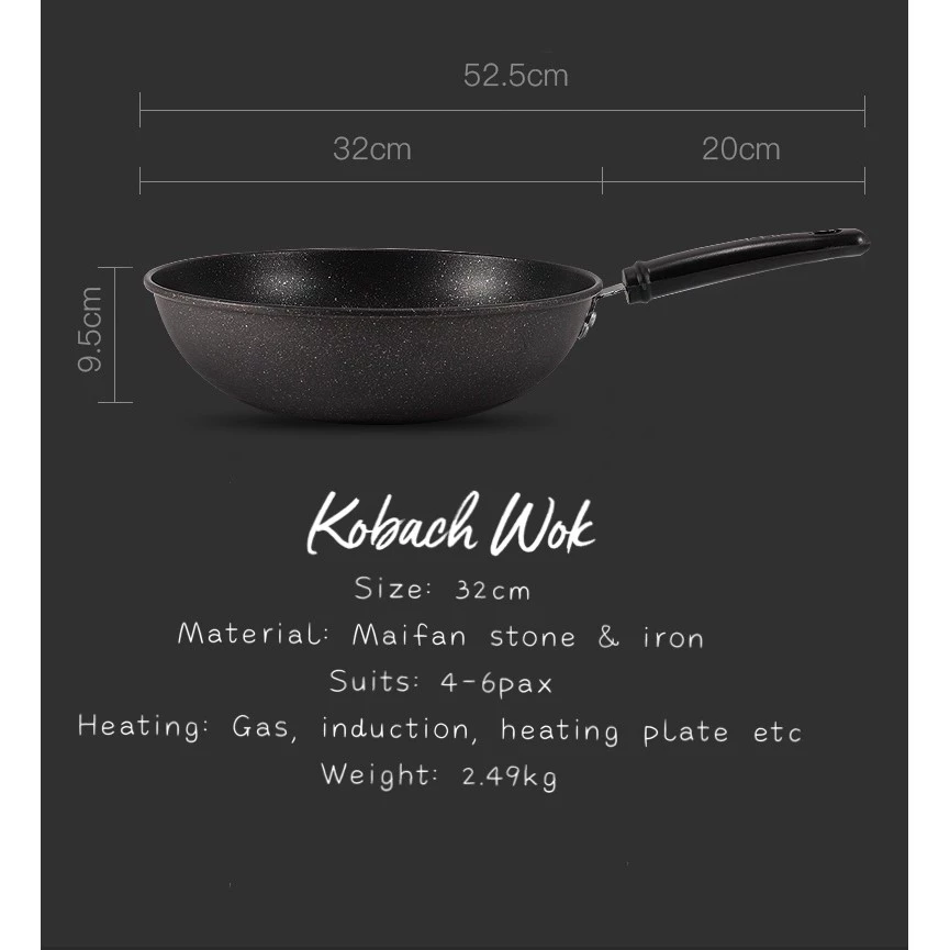 ✔ 1 x 32cm Frying Wok – Large enough for family meals, stir-fry, and one-pot dishes