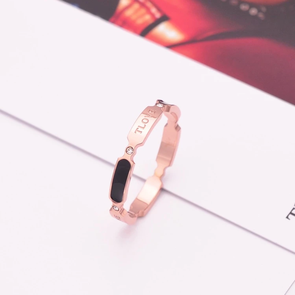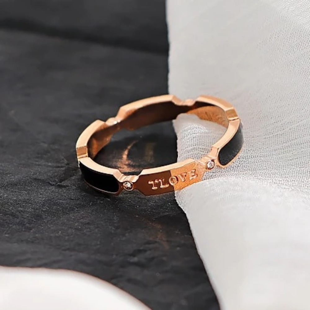 ✔ 1 x Rose Gold “LOVE” Engraved Enamel Ring